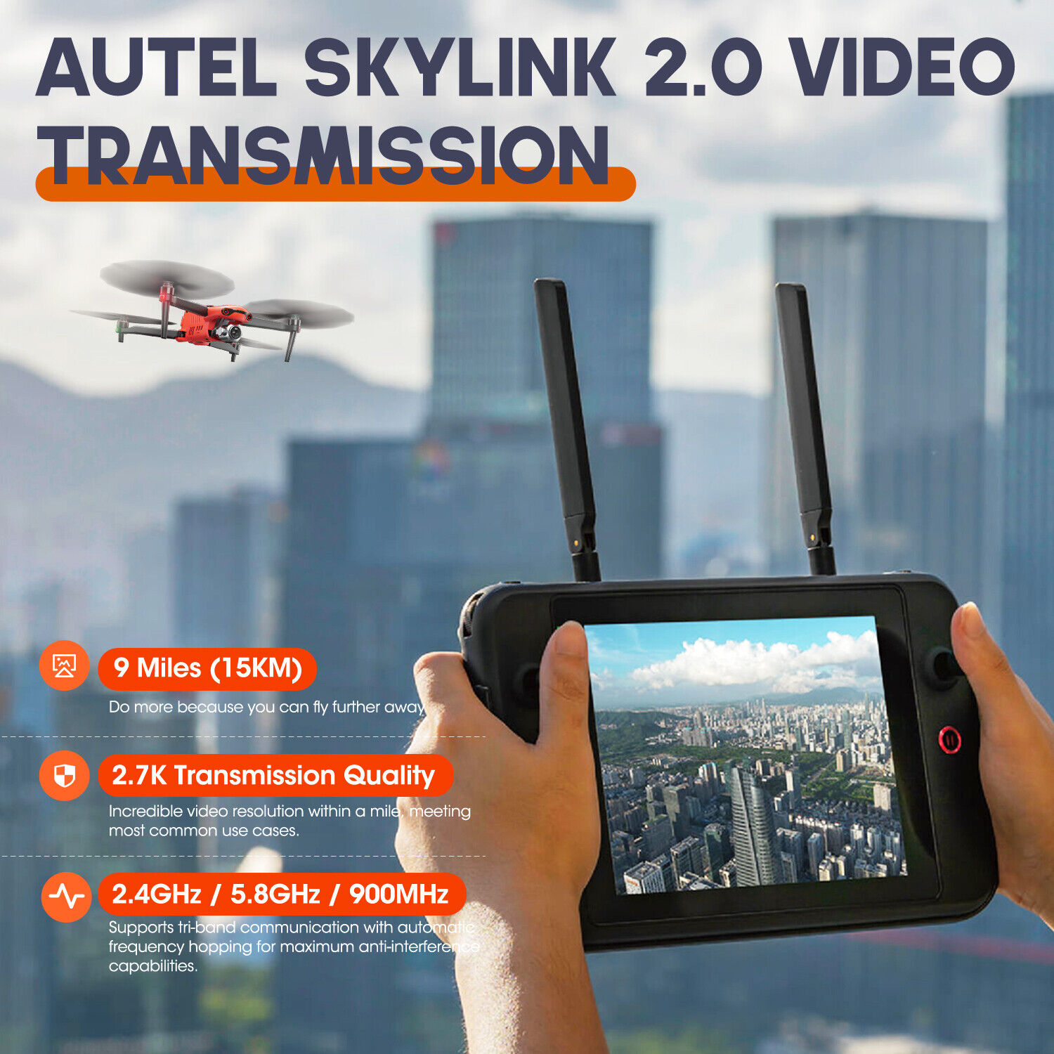 - 🏆【AUTEL NEW SYSTEM – SKYLINK 2.0 VIDEO TRANSMISSION】Autel EVO II Pro Enterprise V3 is upgraded with Autel drone’s all new SkyLink 2.0 Video Transmission technology, allows video transmission from up to 15 km away and Image Quality up to 2.7K, supports 2.4GHz / 5.8GHz / 900MHz tri-band communication and can automatically frequency hop for maximum anti-interference capability.