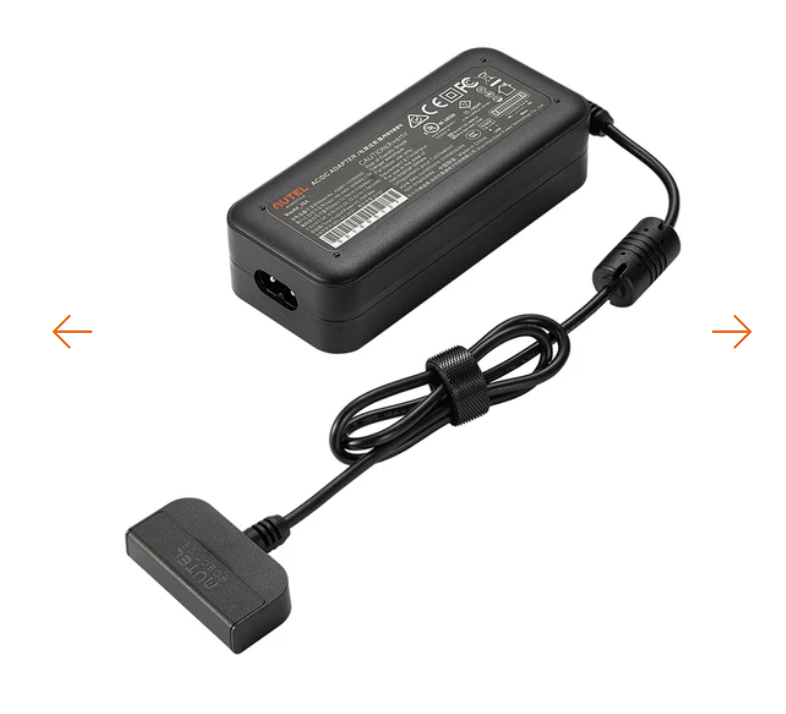 The Autel EVO Lite Battery Charger / Power Adapter can recharge an EVO Lite battery and has a USB-A port to connect the Remote Controller’s charging cable so both can be recharged at the same time.