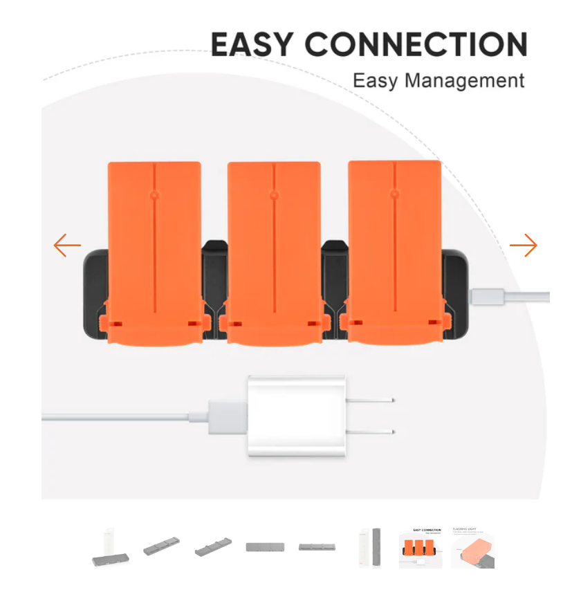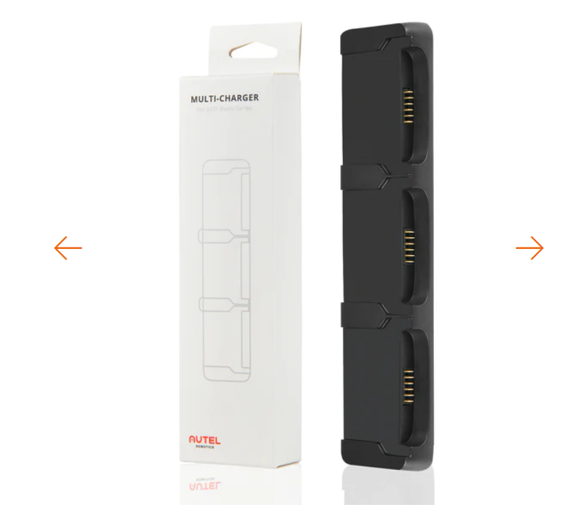 The Autel EVO Nano Multi-Charger Battery Hub is a compact strip can charge up to three EVO Nano batteries. Connects to the Power Adapter via USB-C cable.